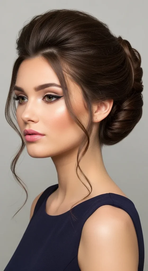Inspired by bridal looks, this chignon sits at the nape and features airy volume. It’s ideal for long hair that holds curl well. Add subtle highlights or shine spray to enhance brunette depth under prom lighting.
