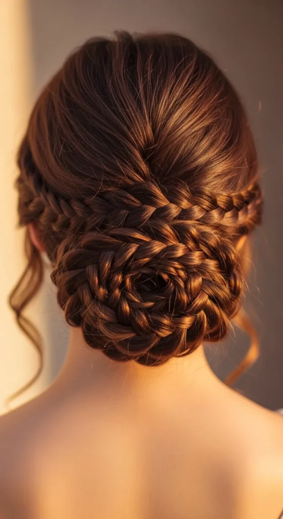 This combines structure with softness. Braids wrap into a low bun, adding texture and interest. It’s secure, elegant, and perfect if you plan on dancing all night.
