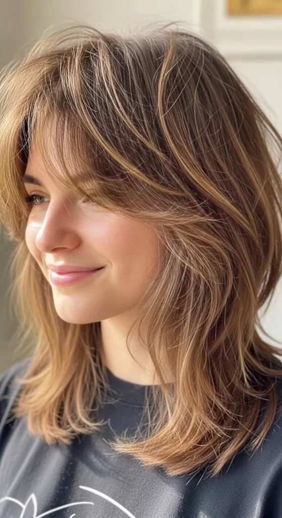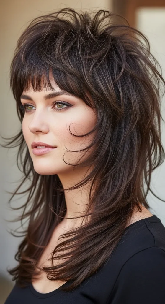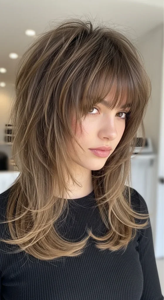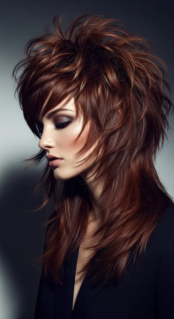 This cut blends the softness of a shag with the bold attitude of a mullet—creating volume, movement, and face-framing layers that look styled even when they’re not.